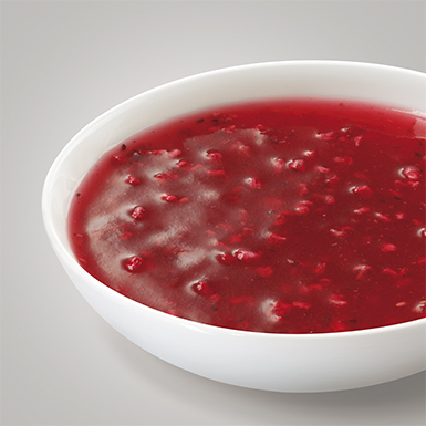Sukker, modificeret kartoffelstivelse, maltodextrin, 3,0% frysetørrede hindbærstykker, 1,9% frysetørret solbær pulver, surhedsregulerende middel (citronsyre), aroma