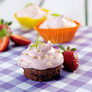 Dessertpulver til en lækker, velsmagende og luftig mousse med en frisk rabarbersmag og jordbærstykker.