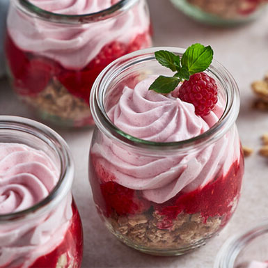 Vegansk hindbærmousse med lækker, let og cremet smag.